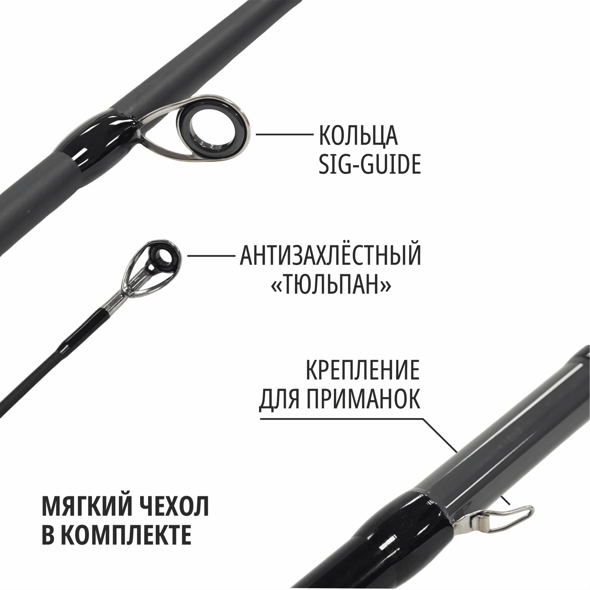 Вес удилища составляет всего 220 граммов, что делает его легким и удобным для длительных рыбалок. Меньший вес также способствует меньшей усталости рук, позволяя вам сосредоточиться на процессе ловли.